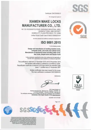 Design and manufacturer of vending machine locks, computer locks, coin locks and cabinet locks. Manufacturer of mechanical locks including wafer locks, disc locks, dimple locks and tubular locks.